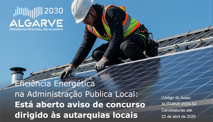 Está aberto o aviso de concurso ALGARVE 2024-54 dirigido às Autarquias Locais para a apresentação de candidaturas na área da Eficiência Energética na Administração Pública Local.